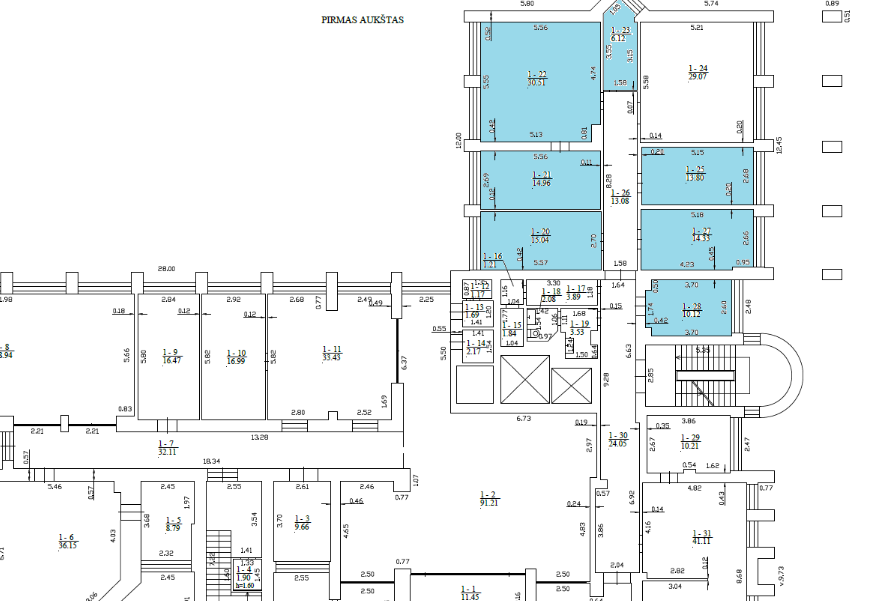 Nuomojamos patalpos administracinei veiklai, išsidėsčiusios administracinio pastato pirmame ir antrame aukšte, viso nuomojamas plotas 240,87 kv. m. Patalpos nuomojamos esamos būklės, nuomininkas turės galimybę (savo lėšomis) patalpas įsirengti pagal savo poreikius.