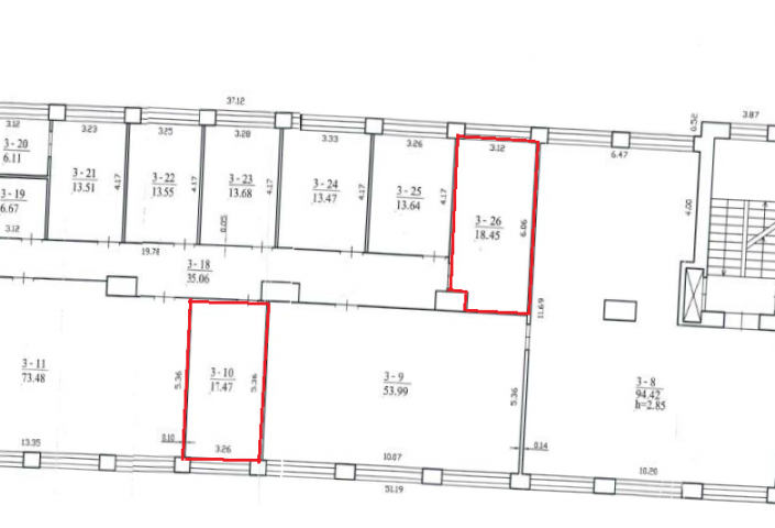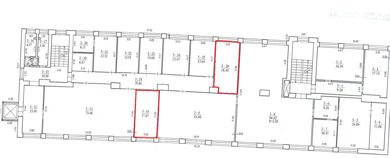 Nuomojamos patalpos administracinei veiklai, išsidėsčiusios pastato trečiame aukšte, viso nuomojamas plotas 44,05 kv. m. Patalpos nuomojamos esamos būklės, nuomininkas turės galimybę (savo lėšomis) patalpas įsirengti pagal savo poreikius.