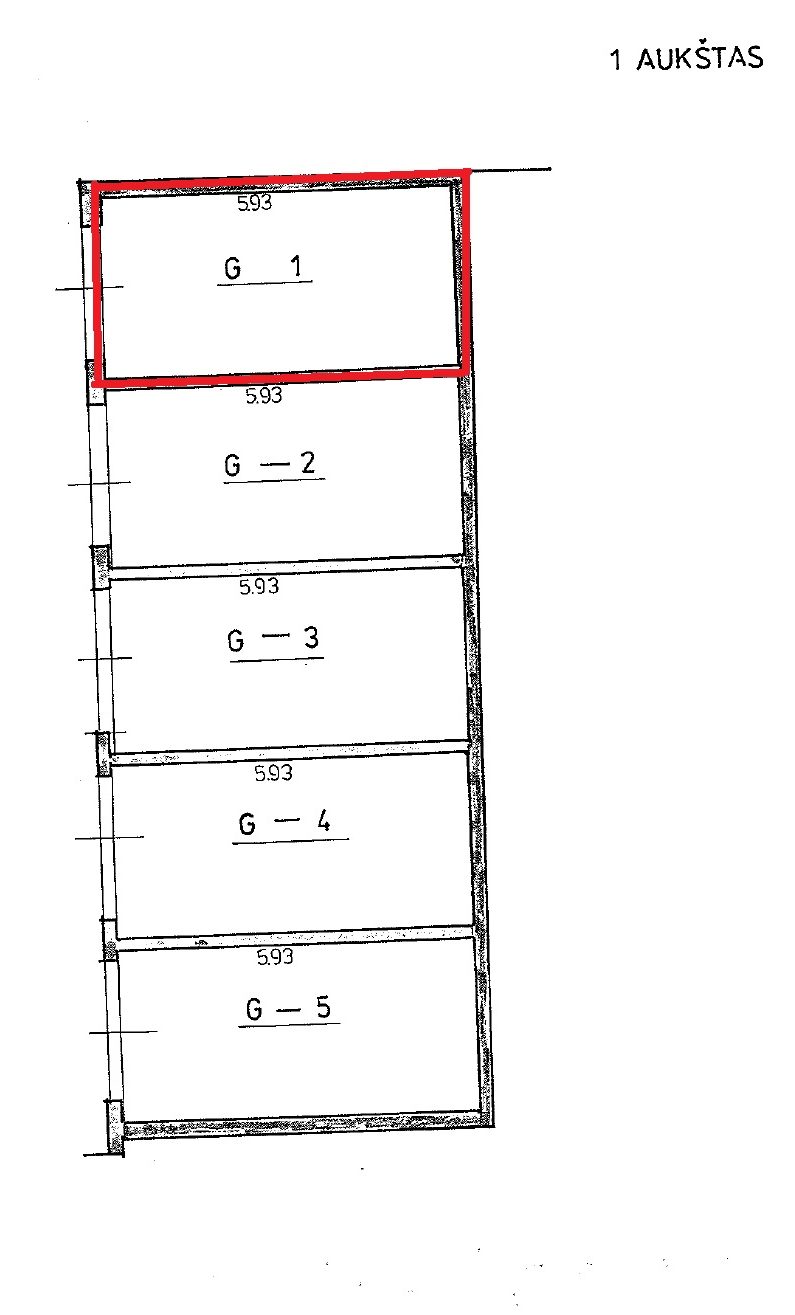 Nuomojama garažų paskirties patalpa, viso nuomojamas plotas 18,96 kv. m. Patalpa nuomojama esamos būklės, nuomininkas turės galimybę (savo lėšomis) patalpą įsirengti pagal savo poreikius.