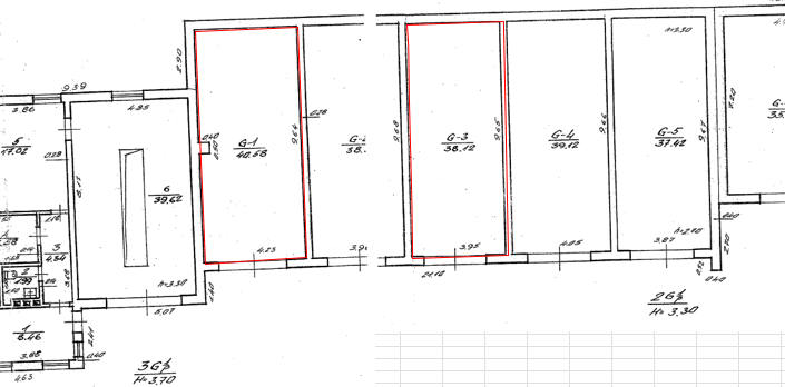 Nuomojamos garažų paskirties patalpos: G-1, G-3, viso nuomojamas plotas 78,70 kv. m. Patalpos nuomojamos esamos būklės, nuomininkas turės galimybę (savo lėšomis) patalpas įsirengti pagal savo poreikius.